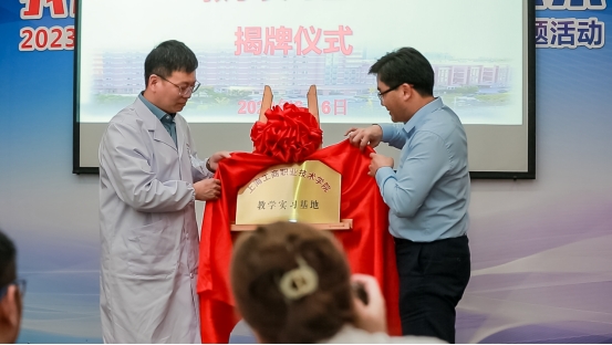 孙云立与陆一鸣签署共建教学实习基地协议,唐威与汤庆丰为实习基地揭牌。