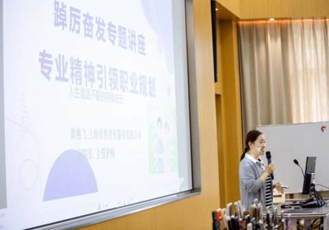 为更好地帮助学生正确认识专业,理解“护理”,培养专业精神,明确自我专业发展方向,2023年6月7日,职业大讲堂系列讲座在PICH现代服务学院再次开展,讲座以“踔厉奋发,专业精神引领职业规划”为主题,特邀上海市养老机构服务质量监测员、上海星堡高端养老院副院长黄燕飞主讲。