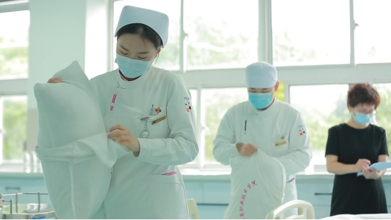 在学院护理教学实训中心,学生通过自我介绍、铺床、测血压、肌肉注射、心肺复苏等技能向医院专家展示了良好的专业素养与学院风采,学生认真的态度、规范的着装,饱满的精神状态,熟练的操作技能,恰当的人文关怀及对操作细节的把控,得到了专家和老师们的一致认可和赞许。