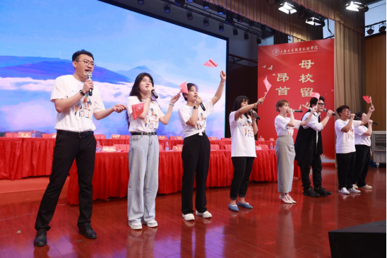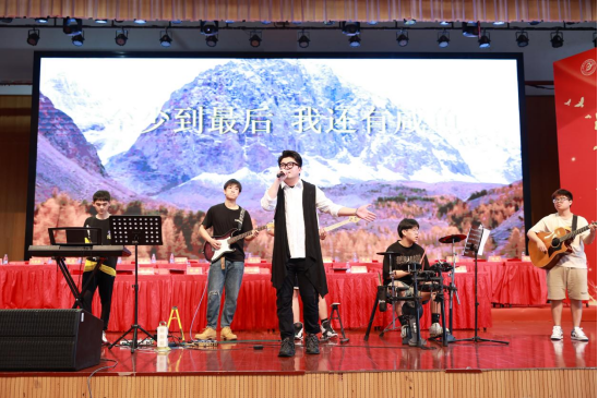 2023届毕业生代表与教师代表共同演唱《知足》,承载了浓重的不舍与祝福。毕业班辅导员为毕业生送上《离别日记》,毕业生代表也为毕业班辅导员送上鲜花。