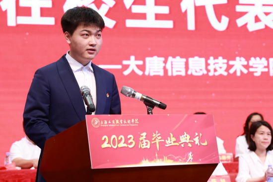 在校生代表大唐信息技术学院吴奕霖为毕业生们送来祝福。祝愿毕业生们保持热爱、奔赴山海,一帆风顺、前程似锦!