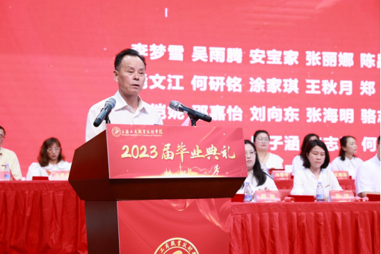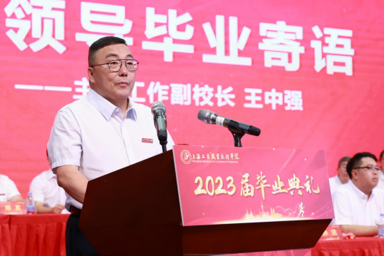 最后主持工作副校长王中强为毕业生们送上寄语。饱含着对毕业生的殷切期望,王中强向同学们提出希望:第一,希望广大青年做拥有远大理想、信念坚定的追梦人。广大青年要志存高远,坚定树立对马克思主义的信仰、对中国特色社会主义的信念、对中华民族伟大复兴中国梦的信心,树立为祖国为人民永久奋斗、赤诚奉献的坚定理想,自觉弘扬伟大建党精神,赓续红色血脉,传承复兴伟业,让红色基因、革命薪火代代传承,永远跟党走,奋进新征程。第二,希望广大青年做敢于担当、吃苦耐劳的奋斗者。广大青年要拿出敢吃苦的闯劲干劲、坚定敢吃苦的决心恒心,在精神上不怕吃苦、在环境上不避艰苦、在现实中踏实苦干,以担重吃苦的“孺子牛精神”为中华民族伟大复兴奋力拼搏、勇往直前。第三,希望广大青年做勤学善思、本领过硬的新时代青年。广大青年要焕发奋斗、奋力、奋发、奋勇等姿态塑造的精神力量,勇做走在时代前列的奋进者、开拓者、奉献者,紧紧围绕党的二十大确定的各项重大目标、重大战略、重大部署,在劈波斩浪中开拓前进,在披荆斩棘中开辟天地,在攻坚克难中创造业绩,用青春和汗水创造出新征程上的新奇迹。