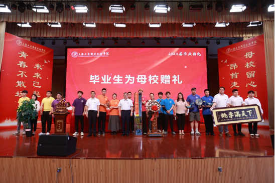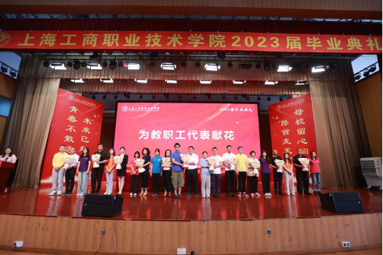 饮水思源,心怀感恩。各院系毕业生们为母校准备了赠礼,表达对母校深深的祝福之情,为教职工代表献花,表达感谢之情。