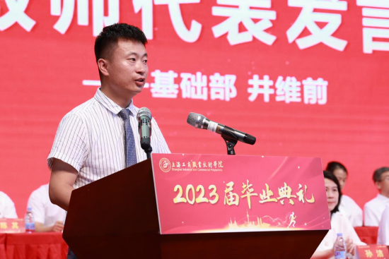 基础部井维前作为教师代表寄语毕业生们: “积财千万,不如薄技在身”,尽管大家已经结束了大学阶段的学习,但学无止境。土地不会辜负耕作的人,种子不会辜负浇灌的人。无论走向工作岗位还是继续校园学习,这个世界在悄悄犒赏不断学习的人!