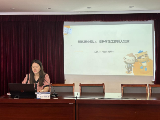 会议第一项议程,辅导员代表交流发言。商学院辅导员阮崇晗以《立德树人 六心育人》为主题分享在思想政治教育、班风学风建设、资助育人等方面的各项工作;党委学工部(处)少数民族专职辅导员阿迪兰·阿斯木以《锤炼职业能力 提升学生工作育人实效》为主题进行了交流发言,从三个方面展现了辅导员的素质培养与提升途径。
