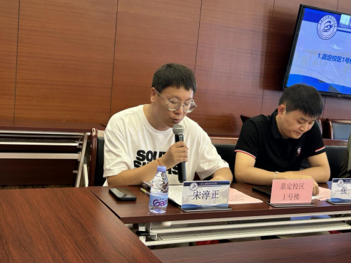 会议第二项议程,由嘉定校区1号楼楼长宋淳正、青浦校区5号楼楼长侍现龙作为教师楼长代表进行交流分享。宋淳正从加强宿舍网格化管理成效和加强宿舍文化建设两个方面分享了这一学期宿舍网格化管理的经验。侍现龙讲述了自己在宿舍网格化建设中遇到的问题和解决问题的经验技巧,以及本学期为更好地打造“一站式”学生社区综合管理模式建设所做的具体工作内容与方案。