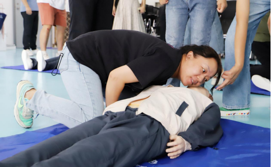 培训学员被分成了四组,我院党员教师结合前期在专业指导下掌握的急救技能,融入到四组学员中协助指导学员完成心肺复苏实操训练,确保每位学员都能独立操作并掌握其注意事项。陆象村学员有说到,按压人体模型的时候,深刻体会到救人是非常专业的事情,一点都不能马虎。华新镇城市运行管理中心学员有提到,心肺复苏急救知识非常有用,回去后也会教给身边的亲朋好友、社区居民,让大家一起学习急救知识,一起守护生命安全。