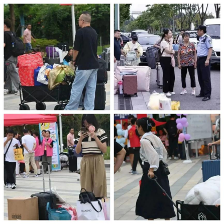 家长们拎着大包小包和孩子们一起踏入工商的校园,虽然手提重重的行李,却怎么也藏不住脸上的欣喜,他们知道孩子们已经踏上了又一层阶梯即将开启另一段新的人生之旅。
