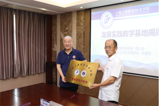 会上,学院院长叶建农与上海龙泉机动车驾驶员培训有限公司总经理范小京代表双方签订校企合作协议书,为龙泉实践教学基地揭牌。