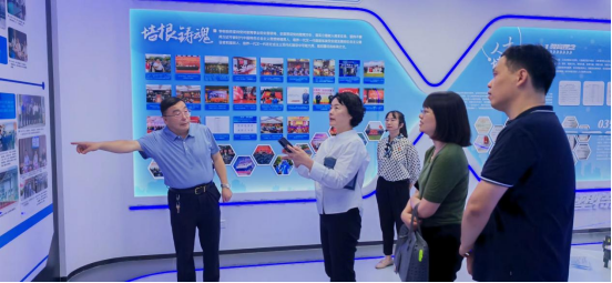 会前,王中强陪同杨蓉一行参观了学校展示馆,重点介绍了学校的办学特点和成绩,杨蓉对学校的历史和发展表示了充分肯定。