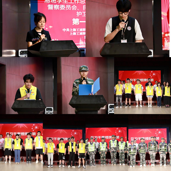 会议还对见习干事(队员)代表进行授牌换装,易班、校园安全护卫总队见习干事代表发言表态他们充满了对易班和校园安全护卫队工作未来的期待,以及做好了为学生服务和奉献的准备,也希望在学习和工作中有所进步,有所收获,让易班在大学生涯中留下浓墨重彩的一笔!
