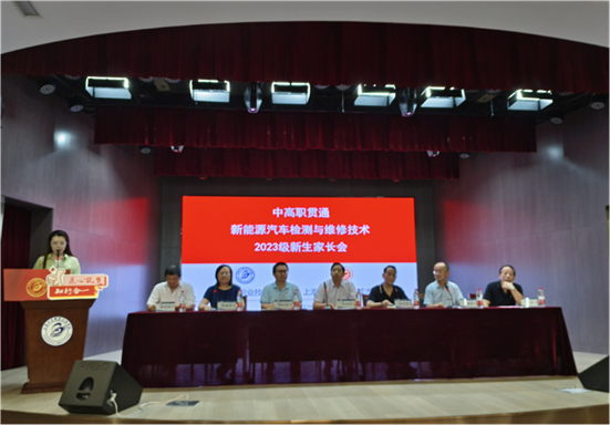 2023年9月28日下午,新能源汽车检测与维修技术中高职贯通2023级新生家长会在kaiyun开云官方在线入口顺利召开,参加会议的有学校副校长李向明、教务处处长赵双全、智能制造与汽车学院院长叶建农、顾问黄虎以及上海市曹杨职业技术学校校长兼党总支书记殷时余、教务处主任秦梅芳、工程技术专业部主任唐明斌、班主任和60名新生及家长。