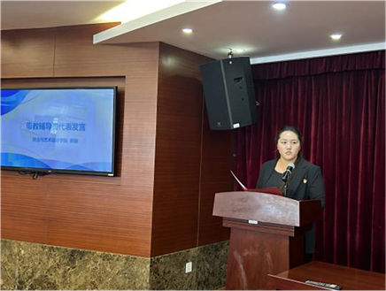 大唐信息技术学院吴宸琛作为新任辅导员代表发言表示感谢学校为大家提供了“师徒结对”的平台,让新辅导员们在辅导员工作岗位上能够快速地进入角色,在师傅的带领和帮助下,不负重托、虚心请教、不断提升。同时作为一名辅导员,更要做好大学生成长成才的引导者和引路人,要坚持以德育为先,做到言传身教,落实立德树人根本任务,让学生积极参加社会实践活动,培养高尚道德情感,让学生逐渐实现对个人德行的自觉、自省、自悟。