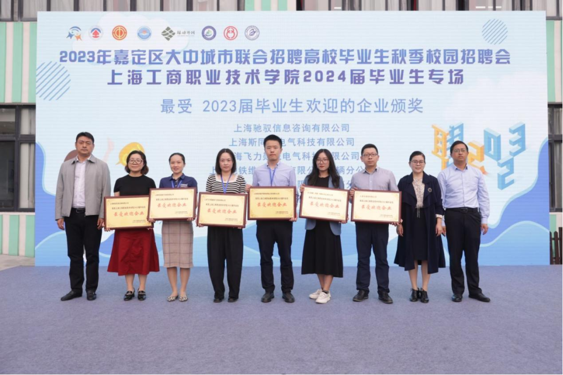 根据2023届毕业生实习就业情况,上海驰驭信息咨询有限公司、上海斯同瑞电气科技有限公司、上海飞力勋铖电气科技有限公司、上海地铁维护保障有限公司车辆分公司、日立电梯(中国)有限公司上海分公司、上海光通信有限公司被评选为2023届最受学生欢迎的企业。上海市嘉定区外冈镇副镇长郁春雷、上海市嘉定区外冈镇人大副主席、总工会主席徐丽琴、kaiyun开云官方在线入口副校长李向明为他们颁奖。