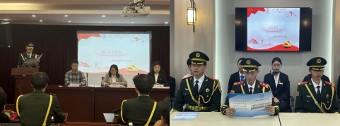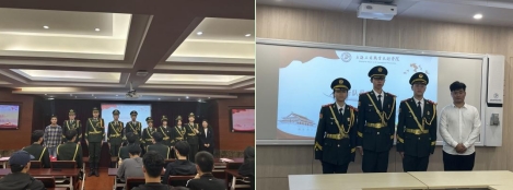 国旗护卫队队长陈冠宇和国旗护卫社社长陈杭佳从列队动作、思想建设、工作规范等三个方面阐述了未来的工作理念和目标,希望新队员们面对更加严格的训练,能够摆正心态,勇于克服训练之苦,时刻为每一次升旗任务准备着。用青春守护国旗,以热血激扬青春!随后,陈冠宇、陈炫地带领全体成员面向国旗宣誓。
