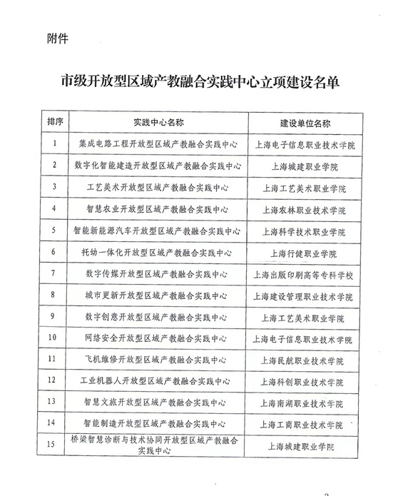 图1:上海市级开放型区域产教融合实践中心立项建设名单