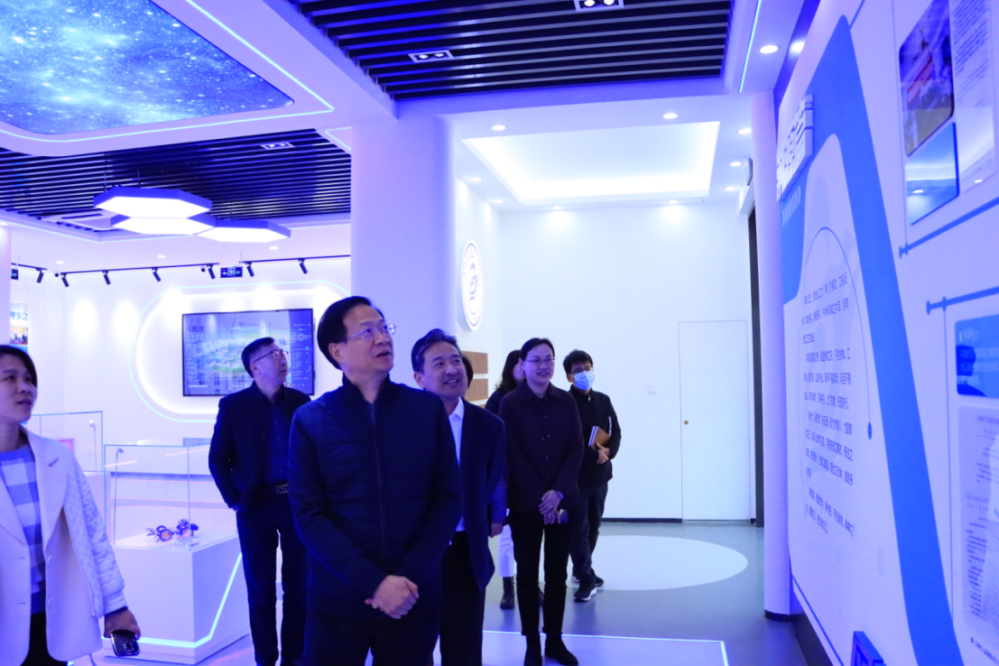 会前,陆强一行参观了学校展示馆,详细听取了学校发展历程及办学特色成果等方面的介绍。