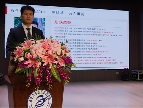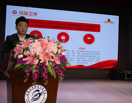 智能制造与汽车学院蒙佳豪在《值青春年少,当韶华不负》主题中,分享自己的学生干部的管理经验,工作中热情主动,每个角色他都尽心尽力;年少立志,过程虽难,但初心不改,他坚信梦想始终是他的启明灯,筑梦道路上步履不止。