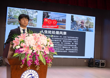 商学院柴思成用《卓越引领,志愿塑造未来》和同学们共勉,他从社会实践和学生干部工作中总结经验,并完美将“学业精于勤奋,行动成于思考”付诸于实践。