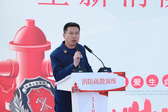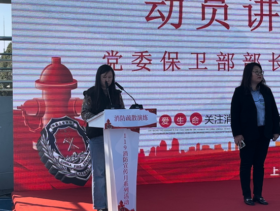 演练开始前,徐晓燕作动员讲话,阐明消防疏散演练的目的和意义,并宣布消防疏散演练正式开始。