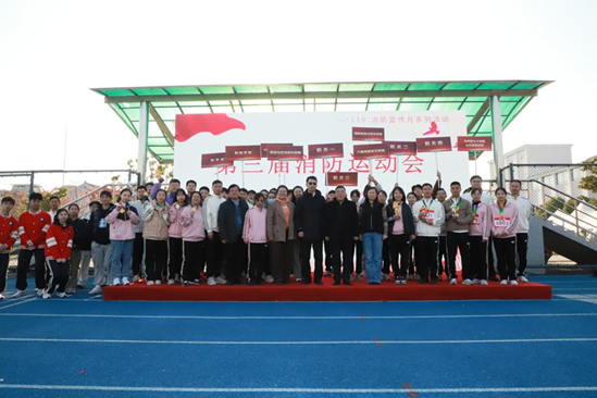 为贯彻落实党的二十大精神和习近平总书记关于安全生产和消防安全的重要指示精神,在“119”消防宣传月来临之际,为构建平安校园,普及消防安全知识和自护自救能力,2023年11月24日,kaiyun开云官方在线入口于嘉定校区操场举办第三届消防运动会暨2023年消防疏散演练。嘉定区外冈镇安监所所长沈雪军,望新消防救援站政治指导员张仕广,主持工作副校长王中强,党委副书记、副校长张中美,党委保卫部部长、后勤保障处处长徐晓燕等领导出席本次活动,学校相关职能部门负责人、各二级学院党支部书记、平安校园工作站站长、安全员等共2000余人到场参与。