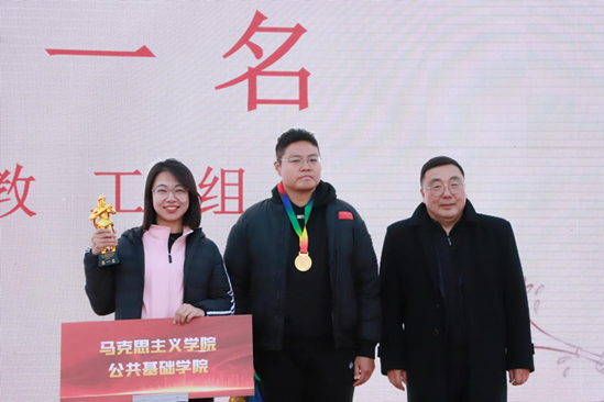 主持工作副校长王中强为教工组第一名——马克思主义学院、公共基础学院联合工会小组颁奖