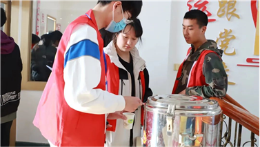 活动当天,志愿者们早早地来到献血点,摆放好桌椅、物资,引导参与献血的同学们有序完成信息登记、体检、初筛、采血、观察、领献血证等环节。采血后,志愿者们把师生带到休息区,并送上糖水、面包等食物,同时询问并观察献血者身体恢复情况。