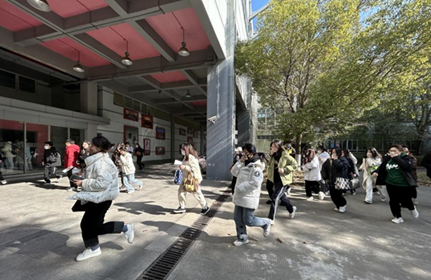 疏散演练开始后,学校立即启动应急预案,组织师生有序疏散,到达指定位置后,各二级学院立即清点人数并向总指挥汇报撤离情况。
