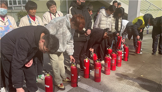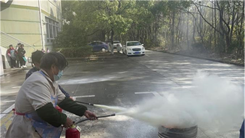 实操过程中,全体人员在现场工作人员的引导下,按照学到的灭火器操作方法使用灭火器,对再次点燃的模拟火场进行了灭火扑救,顺利地完成了灭火任务。本次消防灭火实操演练能帮助师生提高应急处置能力,在关键时刻有效阻止事故的扩大和蔓延,保障师生的生命安全。