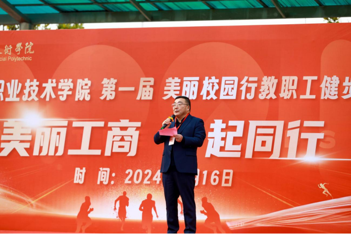 活动开始,主持工作副校长王中强向活动致辞。希望大家通过此次健步走比赛培养积极向上的乐观精神,从行走中获得力量,在心灵上满载而归,为生活和工作增添热情与活力,以龙行龘龘之姿共铸时代新功。