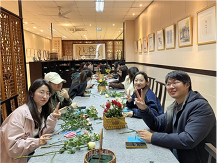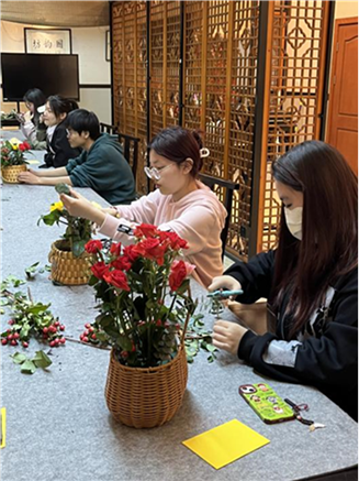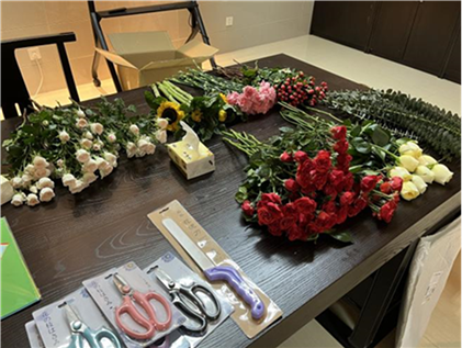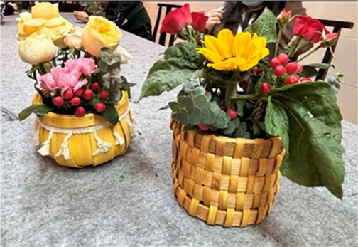 在插花的过程中,同学们感受生命、激发灵感、体验合作,收获充满创意的团体园艺作品,以实现心理分析与心理疏导的综合效果。同学们通过活动学会与生命接触,能够去细心呵护、照料生命,同时也是在向内关心、照顾自己。同学们纷纷表示“通过制作花束使自己专注于植物的世界里,减少了现实世界带来的焦虑,心境变得平和安宁,释放了压力。”听到同学们的积极发言后,心理中心主任张笑笑也表示,园艺活动是一种新颖的促进身心健康的方式。有效消除焦虑和烦躁情绪,提高专注力;以花木为话题,产生共鸣,促进交流,同时可以培养团队合作能力和社交能力。
