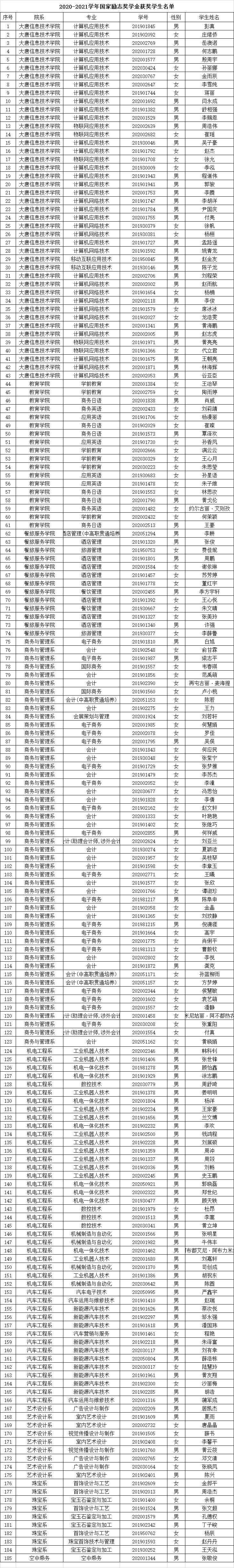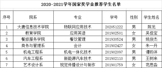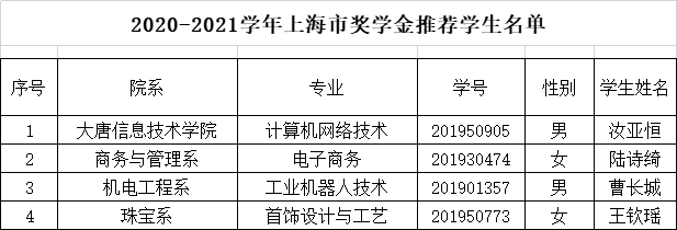 附:2020-2021学年国家奖学金、国家励志奖学金、上海市奖学金获得者名单