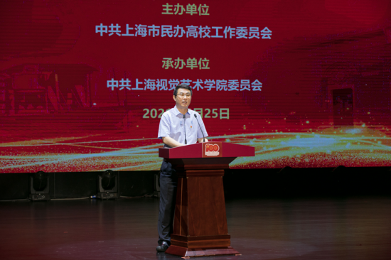 6月25日上午,上海民办高校庆祝建党100周年交流会暨上海市教卫工作党委系统第三季“伟大工程”系列示范党课《延安精神永放光芒》在上海视觉艺术学院举行。市教卫工作党委副书记、市教委副主任闵辉出席并讲话。本市各民办高校党委书记、副书记,党务职能部门负责人,基层党组织、党员、党务工作者代表和上海视觉艺术学院的师生党员代表参加。市民办高校党工委副书记王庆主持。