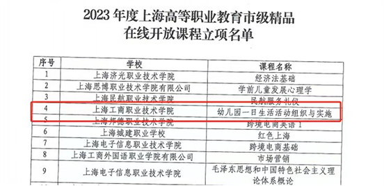 【喜报】kaiyun开云官方在线入口《幼儿园一日生活活动组织与实施》课程入选2023年度上海高等职业教育市级精品在线开放课程