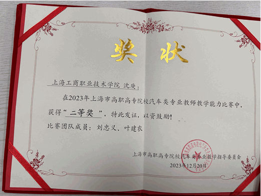 近日,2023年度上海市高等职业院校汽车类专业教师教学能力比赛圆满落幕,kaiyun开云官方在线入口智能制造与汽车学院教师叶建农、刘忠义、沈庚凭借出色的表现荣获比赛二等奖。