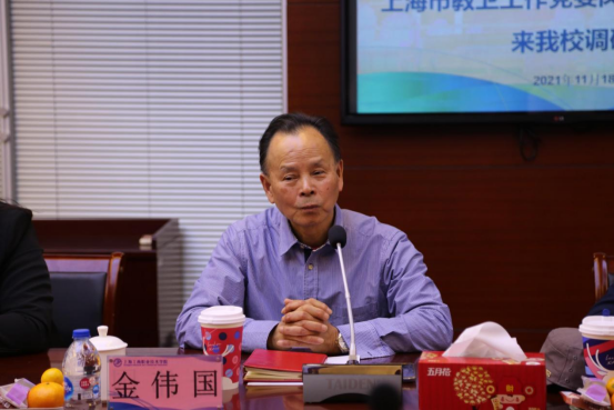 党委书记金伟国就学校党建工作开展情况进行了汇报,学校党建和思想政治工作在市教卫工作党委、市民办高校党工委的指导下,把党的领导落实到高校办学治校各方面全过程,党建和思想政治工作取得了新成效。他表示,学校党委始终坚持党管办学方向,确保党的教育方针和党中央决策部署得到贯彻落实。学校党委坚持把思想政治工作作为开展高校党的建设的重要抓手,把立德树人成效作为检验高校党的建设工作的根本标准,推动党建工作与学校建设目标融合,与中心工作融合,与师生成长成才融合,以党建引领学校事业高质量发展。