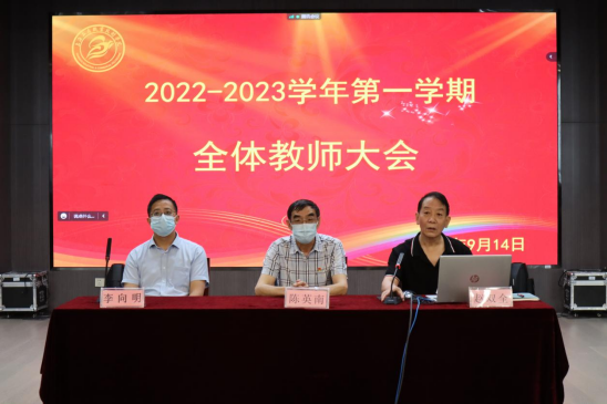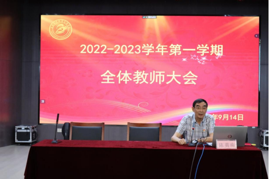 9月14日上午,学校在新报告厅召开2022—2023学年第一学期全体教师大会。校长陈英南,副校长李向明和部分教师代表参加会议。会议按照常态化疫情防控要求,采用线下与线上结合的方式进行,因疫情原因无法现场参会的老师参加线上会议。会议由教务处处长赵双全主持。