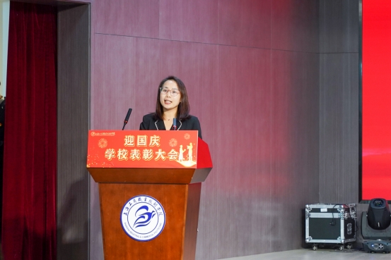 为持续营造尊师重教的浓厚氛围,进一步团结凝聚广大教师以更加昂扬向上的精神风貌和立德树人的扎实行动迎接党的二十大胜利召开,9月30日,学校在新报告厅召开“迎国庆”学校表彰大会。学校党政领导、职能部门主要负责人、各院系部党政主要负责人、各机关直属党支部书记、获奖教职员工代表等参会,未能到场老师通过腾讯会议形式线上参会。本次大会由大唐信息技术学院周丹妮、党委学工部(处)陆夏君主持。