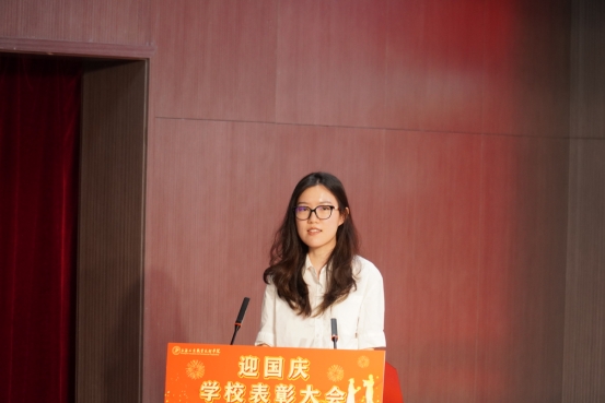 胡佳欣作为学生代表发言。她代表全体学生向老师们表示最由衷的感激和最真挚的祝福。她说,作为工商学生觉得很幸福,他们会把对老师深深的爱,化作实际行动,尊重老师的劳动,认真上好每天的每一堂课,以优异的成绩,作为送给工商最好的礼物。
