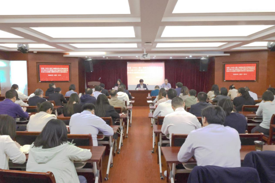 上海民办高校主题教育第1联络组陈少东,学校党政领导班子成员,各院系部党政正副职负责人,各机关直属党支部书记,各部门、直属单位正副职负责人参加会议。