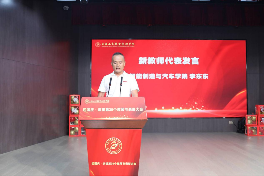 智能制造与汽车学院李东东作为新教师代表发言,她表示,在工商就职是青年教师之幸。在今后的工作中,她将不断涵养“为党育人、为国育才”的教育情怀,增强“立德树人”的使命感,做一个有格局、有情怀、有担当、有温度的教师,为学校事业发展,贡献青年教师的力量。