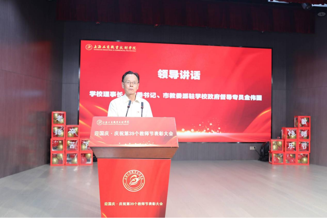 会上,学校理事长、党委书记、市教委派驻学校政府督导专员金伟国代表学校党委向辛勤耕耘在学校各个岗位上的全体教职工表示真诚感谢,向新入职的教职工表示衷心欢迎,向受到表彰的老师们表示热烈祝贺,同时向全体教职工致以诚挚的问候和节日的祝福!