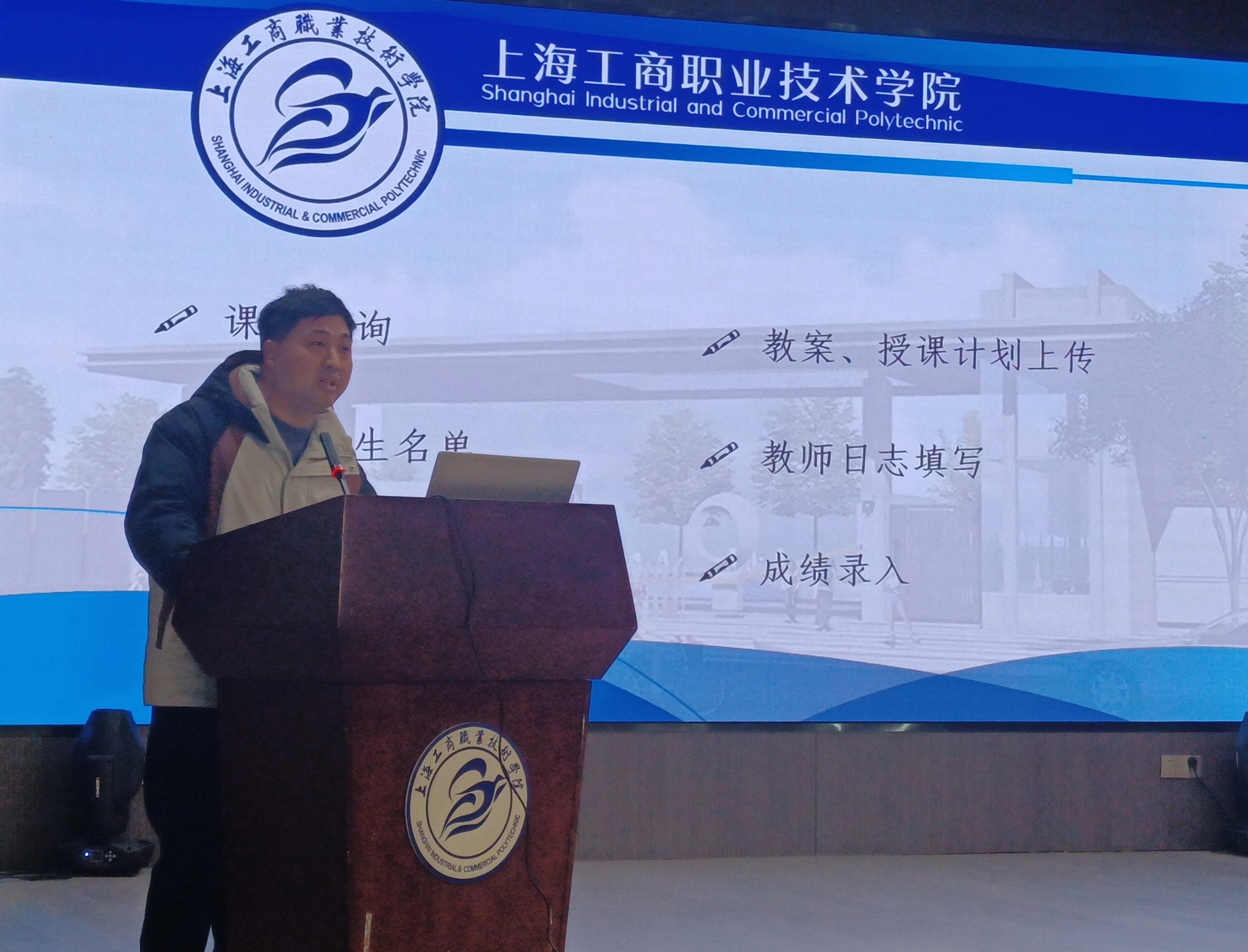 图文信息中心副主任徐德新和教务系统技术人员从课表查询、下载学生名单、调停补课、教案和授课计划上传、教师日志填写、成绩录入等六个方面进行了新教务系统培训。