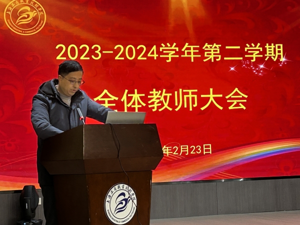 2月23日上午,学校在新报告厅召开2023-2024学年第二学期全体教师大会。副校长李向明和全体专兼任教师、外聘教师和督导等200多人参加会议,会议由教务处副处长杨春玲主持。