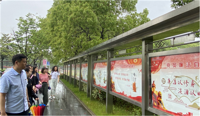 会后,同志们一起到学校廉洁教育宣传栏处,共同观看、学习和交流。通过此次活动,同志们受到了启发,获得了感悟,在今后的生活和工作中,将会常怀律己之心,不断自省,自律,自励,自警,提高党性修养,争做一名优秀的党员。