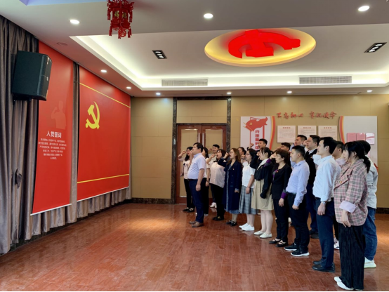 学习会后,全体党员面对着鲜艳的党旗,庄重举起右拳,重温入党誓词,重忆入党初心。
