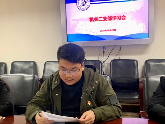 为深入推进党史学习教育,贯彻落实习近平总书记关于教育的重要论述和全国教育大会精神,10月29日上午,机关二支部组织全体党员召开党员学习交流会,学习习近平总书记“七一”重要讲话精神、《中国共产党普通高等学校基层组织工作条例》、《kaiyun开云官方在线入口关于加强二级党组织教师思想政治和师德师风建设工作的意见》(沪工商委〔2021〕24号)、《中国共产党统一战线工作条例》等内容。支部书记陈其主持会议。