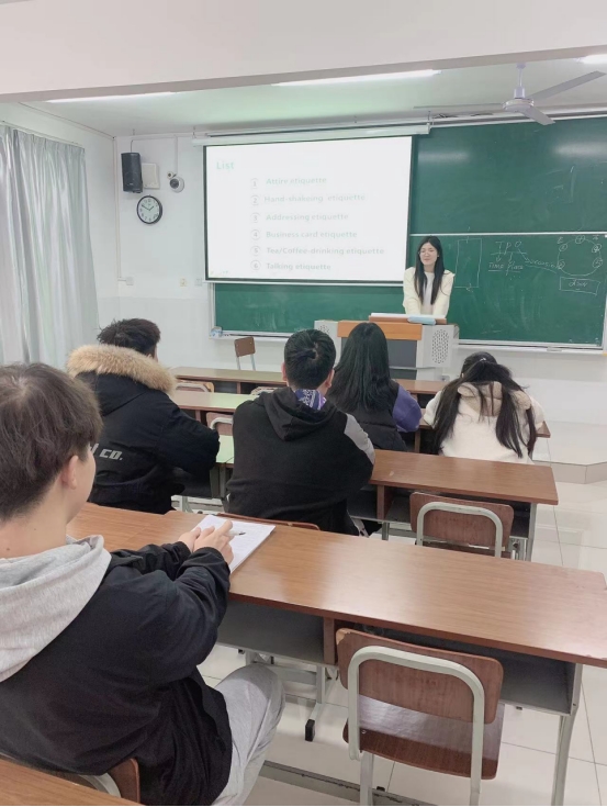 2021年11月26日、12月3日和10日,公共英语党小组吴艳丽、黄李、刘娟三位老师分别为学生上了一堂英语语言提升课,教授内容分别为:英语常用音标以及对应字母的自然拼读和练习;英语学习方法交流及餐桌礼仪;求职、面试礼仪。共有22名学生参加了此次学习,学生们课堂认真听讲,积极参与,课下纷纷表示受益匪浅,希望能够多多开展此类活动。