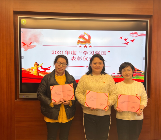 会议的最后,机关三支部对2021年度支部“学习强国”学习标兵和学习积极分子进行了表彰并颁发了荣誉证书。希望通过表彰活动进一步调动党员们学习积极性,形成比学赶超的浓烈氛围,进一步发挥好党员的示范引领作用,希望大家用好“学习强国”学习平台,养成每日“必修课”的习惯,切实加强政治理论学习,用习近平新时代中国特色社会主义思想武装头脑,强化“四个意识”,坚定“四个自信”,做到“两个维护”,努力提升党性修养和综合素质,把理论学习成果转化为推进学校事业发展的强大动力,推动学习贯彻习近平新时代中国特色社会主义思想走深、走实、走心。