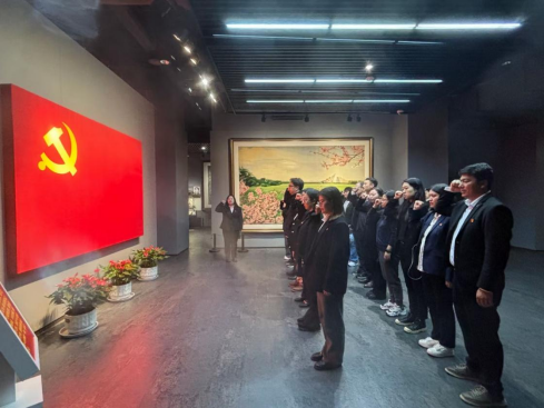 在纪念馆内,面对鲜红的党旗,机关二直属党支部书记陈旭带领全体党员重温入党誓词,进一步坚定了党员同志对党忠诚的崇高信念。